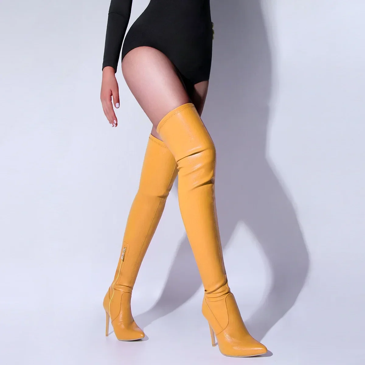 Sexy Pu Lack Leder Überkniestiefel mit Stöckelabsatz.