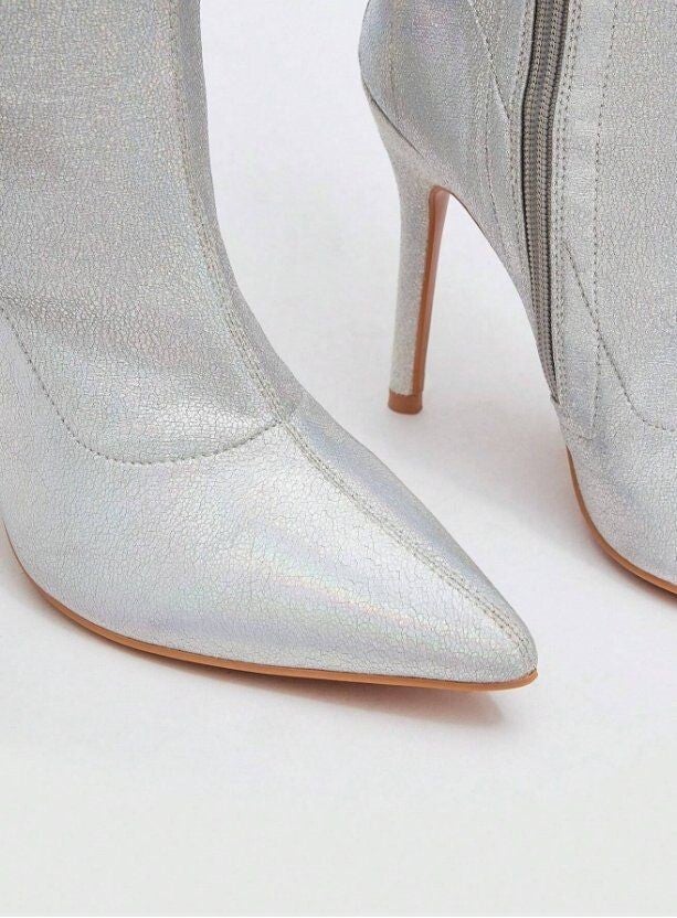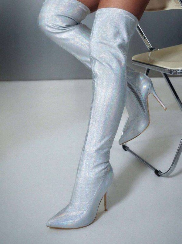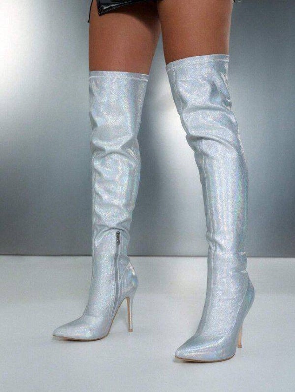 Mega Sexy PU Leder Lack Stiefel Silbern Glitzernd