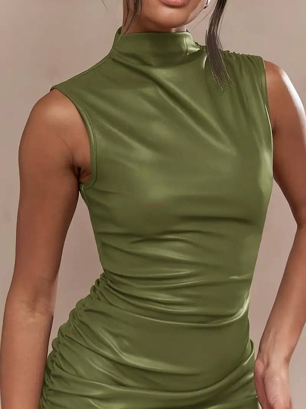 Sexy Outfit mit Anschmiegsamen Material. Passt sich Optimal Ihrem Körper an. Elegantes Damen-Kleid in Olivgrün und Weinrot aus PU Leder - Ärmellos, Rundhals, dehnbar & Maschinenwaschbar. Ideal für alle Anlässe. Machart wie es abgebildet ist. Erhältich in 2 Farben.