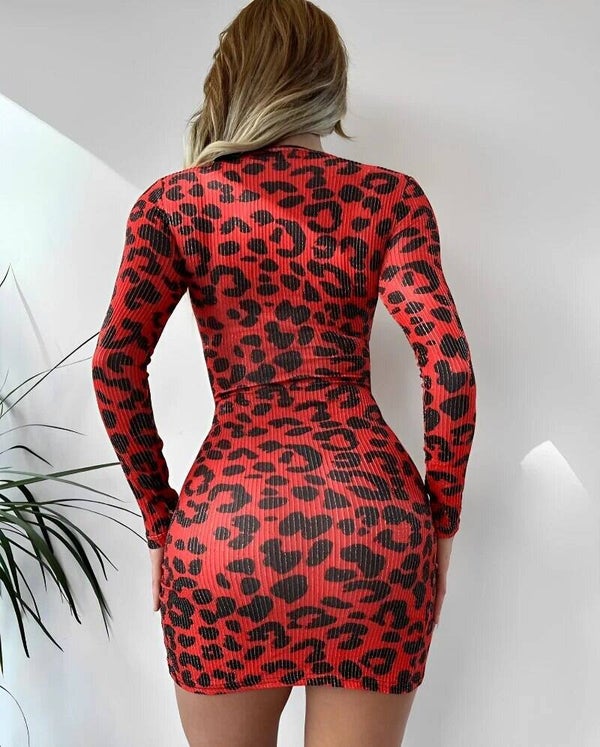 Mega heisser Lang Arm Minikleid mit Leoparden Look.